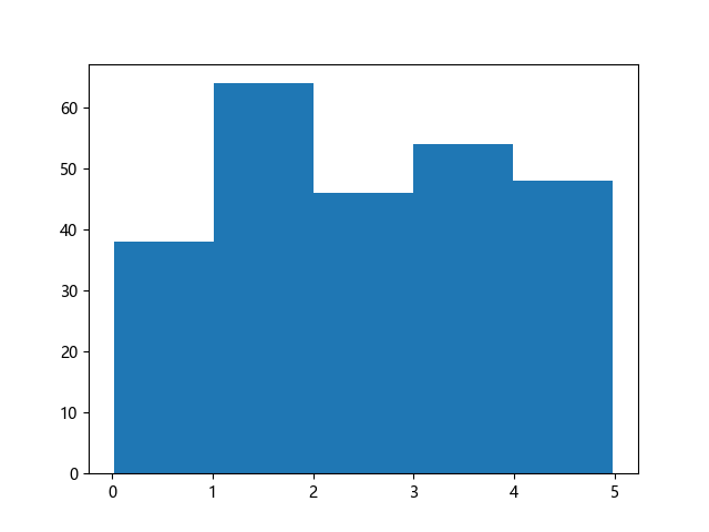 # 使我们的编译器能够绘制的三行代码: import sys import matplotlib matplotlib.use('Agg') import numpy import matplotlib.pyplot as plt x = numpy.random.uniform(0.0, 5.0, 250) plt.hist(x, 5) plt.show() # 使我们的编译器能够绘制的两行代码: plt.savefig(sys.stdout.buffer) sys.stdout.flush()